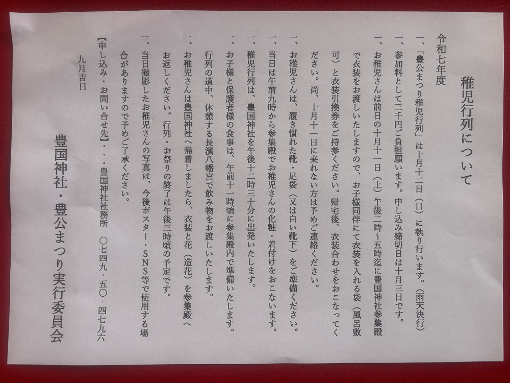 10月12日(日)豊公まつり武者行列に参加してくださるお稚児さんを募集しております。